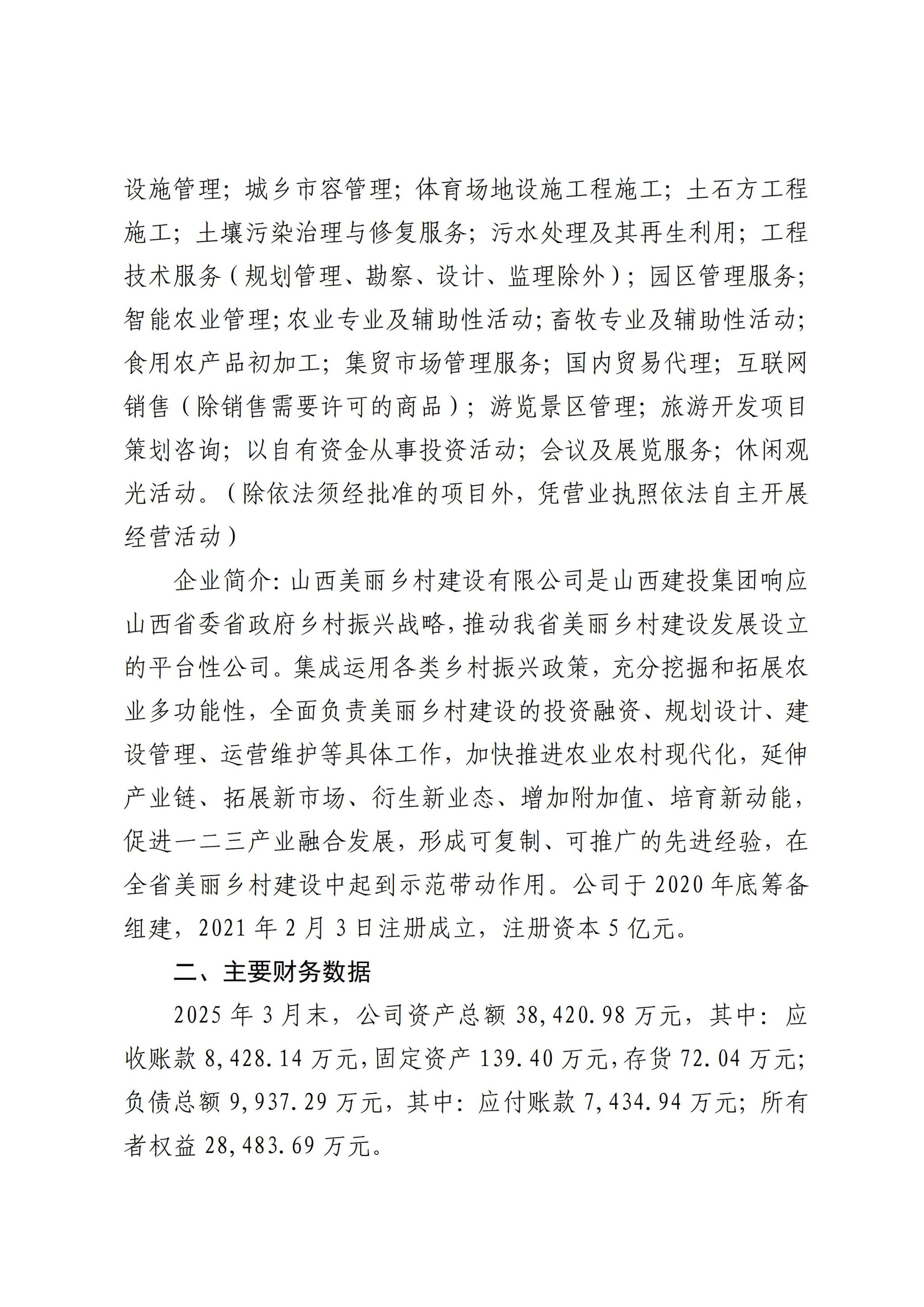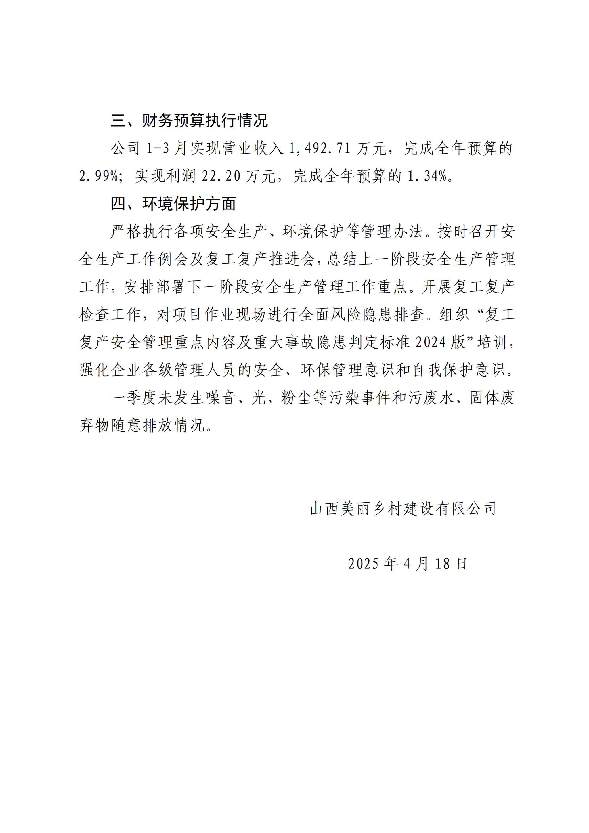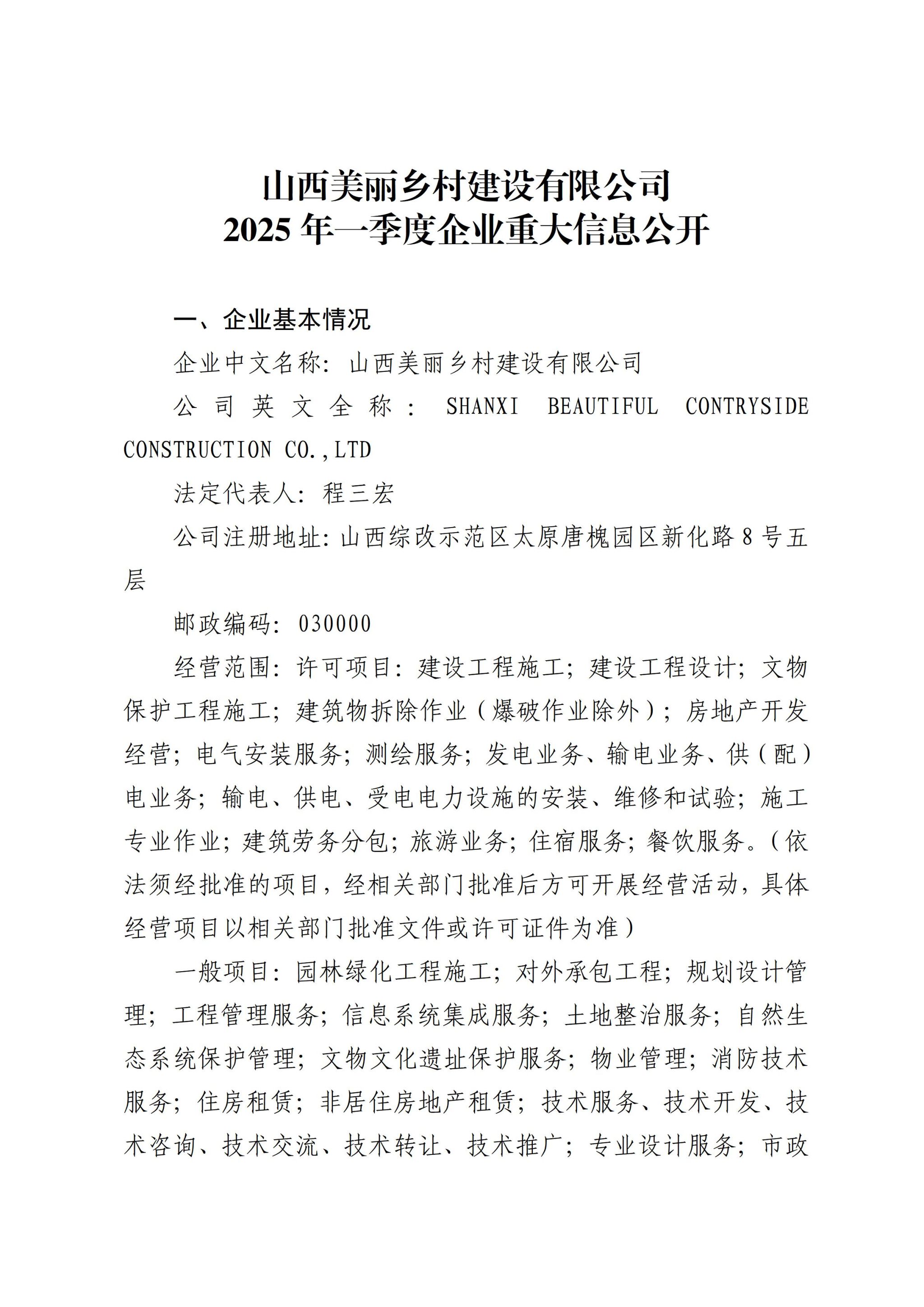 山西漂亮墟落建设有限公司2025年一季度企业重大信息果真